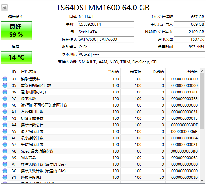通电10个小时,写入78G,健康还有99%?这几个数据有些矛盾了。