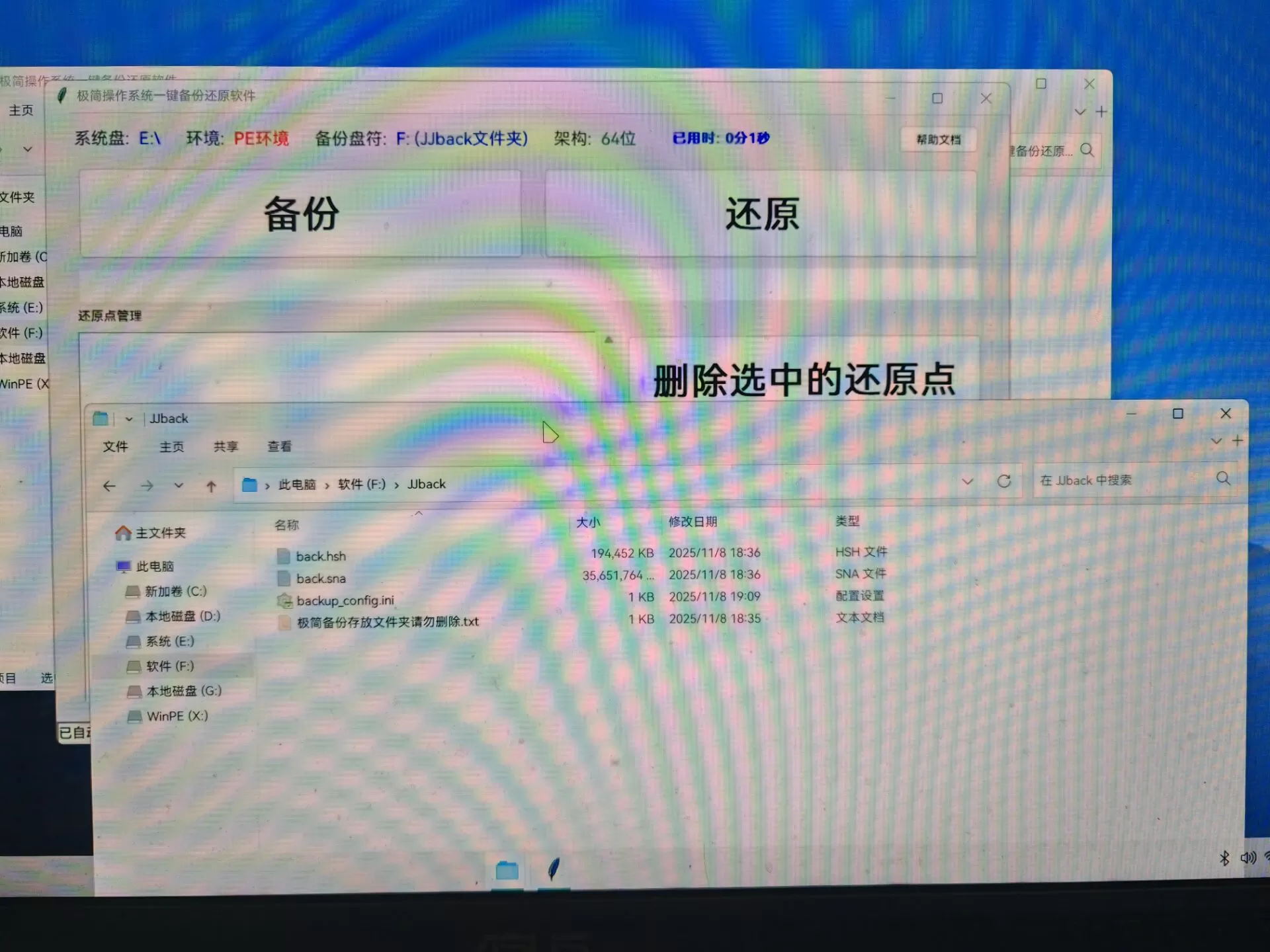 mao0819 发表于 2025-11-8 22:41 明明有备份,但是软件不显示???是后面重新进PE
